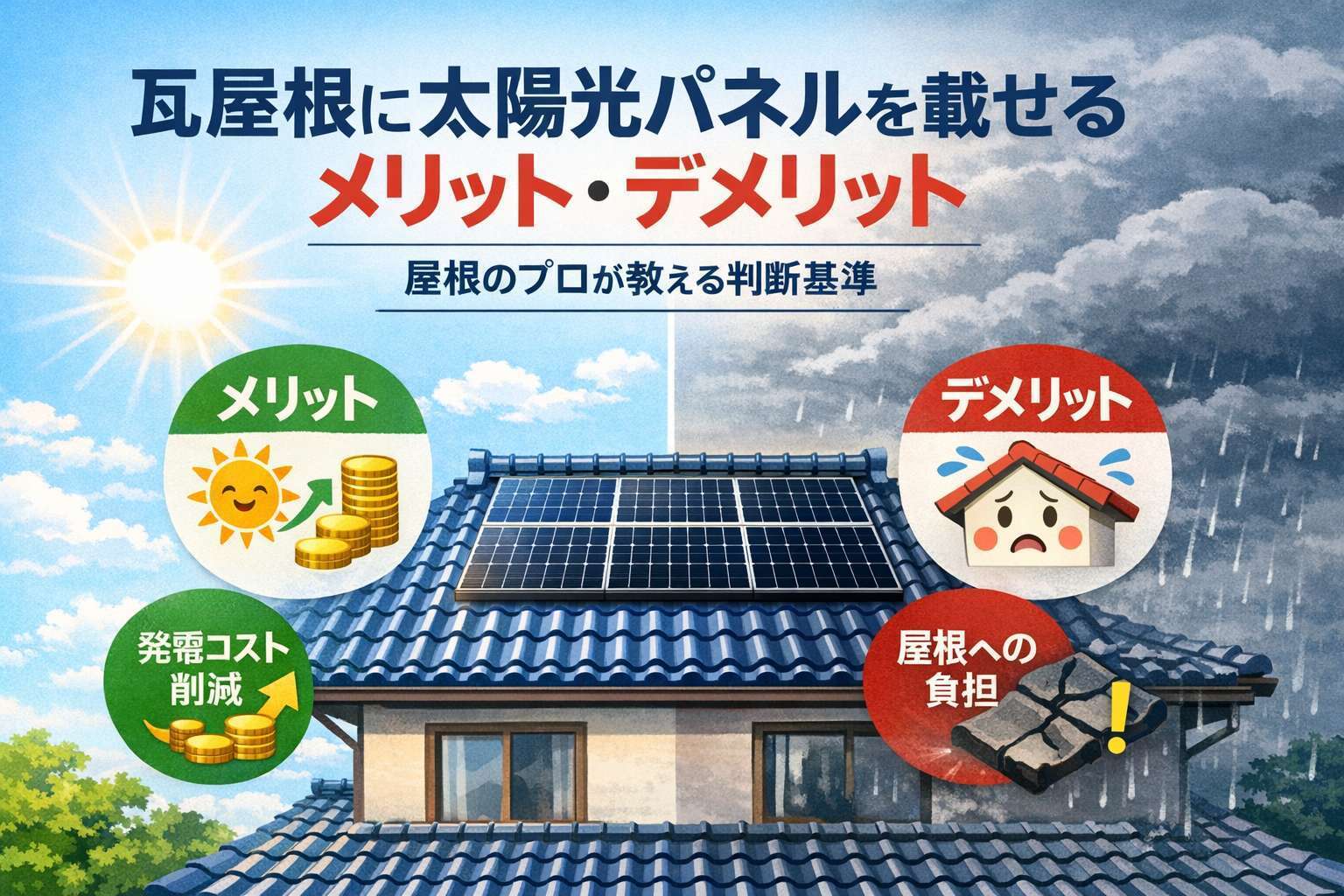 電気代の高騰や災害時の備えとして、太陽光発電の導入を検討される方が増えています。しかし、ご自宅が「瓦屋根」の場合、スレート屋根や金属屋根とは異なる不安を抱かれる方が非常に多いのが実情です。